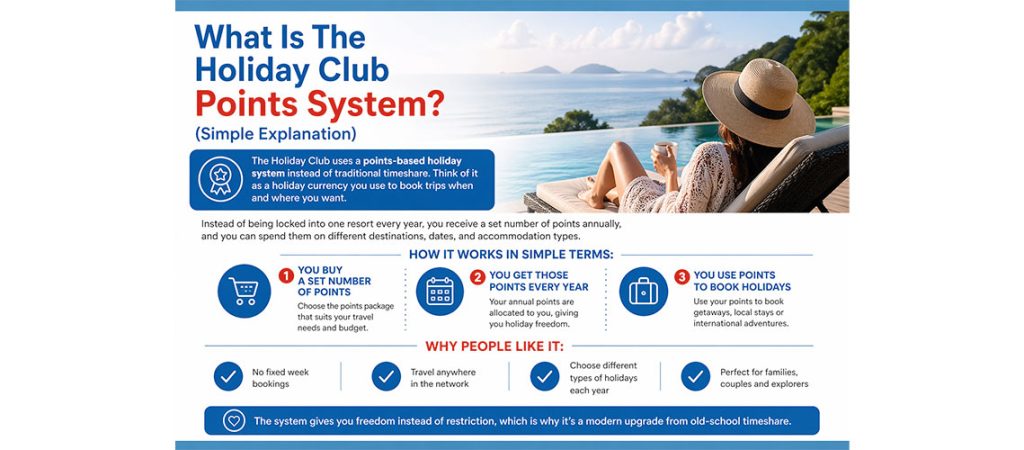 The Holiday Club uses a points-based holiday system instead of traditional timeshare. Think of it as a holiday currency you use to book trips when and where you want. Instead of being locked into one resort every year, you receive a set number of points annually, and you can spend them on different destinations, dates, […]